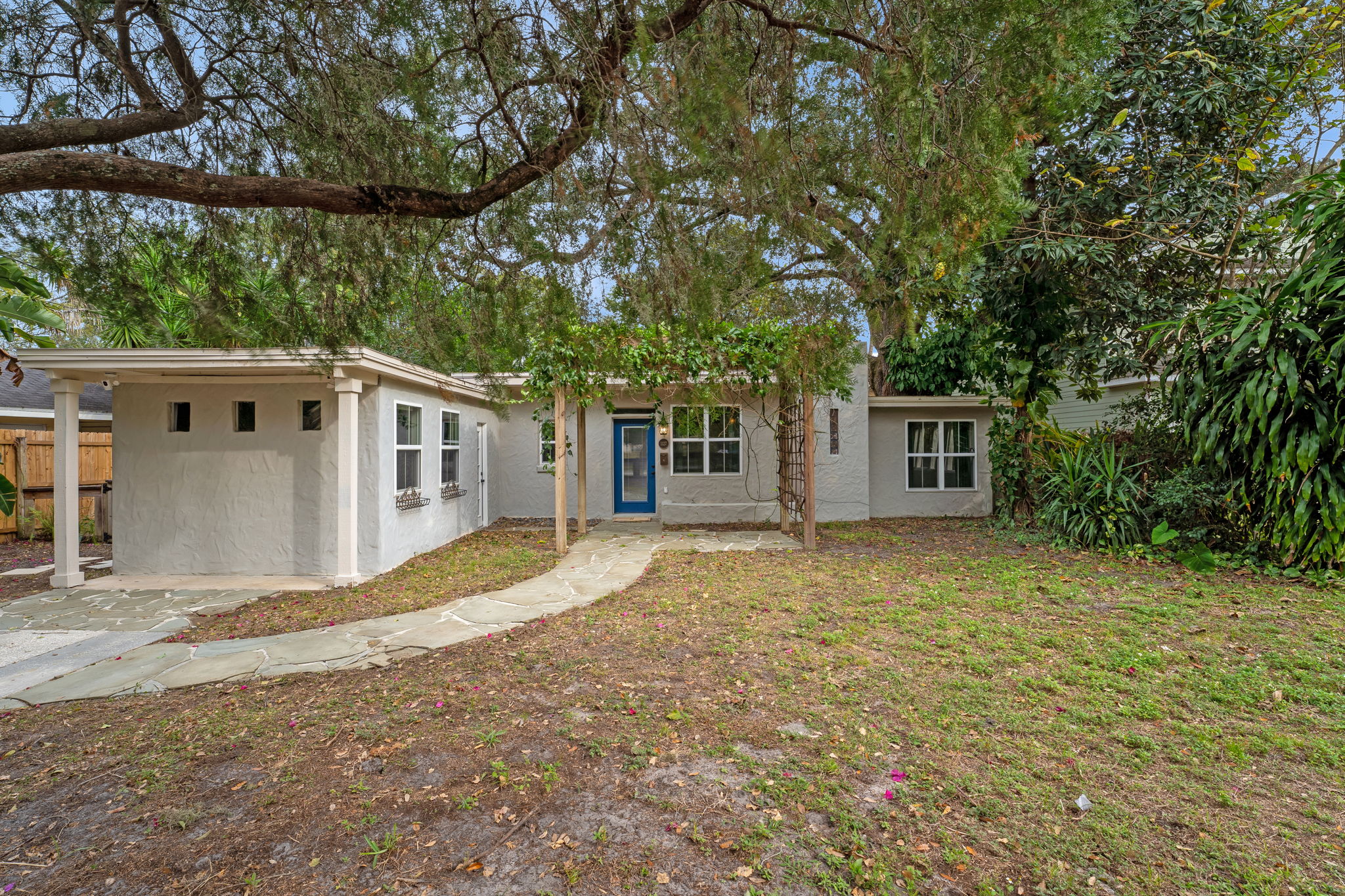 Set just off the cobblestone streets that give this part of Orlando its old-city character, a renovated 1952 bungalow sits in the heart of Colonialtown and captures the energy this pocket of the city is known for. With three bedrooms and one bath, the home offers a smart, efficient layout that balances historic charm with thoughtful modern updates. Inside, engineered wood and tile floors run throughout, and the galley-style kitchen stands out with granite counters, stainless steel appliances, ample rich cabinetry, and a pantry with pull-out shelving that keeps everything within reach. The bathroom features a walk-in shower with a glass enclosure and clean tilework, while one of the bedrooms serves equally well as a home office or creative space. Out back, the large fenced yard opens up possibilities rarely found this close to downtown, complete with raised garden beds, a matching storage shed, and a stone seating area strung with market lights that feels made for relaxed evenings. A front pergola with passion fruit vines adds both presence and function. The location ties it all together, with easy bike access to the Milk District, the Mills 50 District, Ivanhoe Village, and downtown Orlando, placing you minutes from some of the city’s most talked-about dining, including chef-driven restaurants and nationally recognized spots that have helped shape Orlando’s growing food culture. Nearby green spaces like Harry P. Leu Gardens and Lake Eola offer a natural counterpoint, while the Orlando Urban Trail keeps daily life connected. The result is a lived-in, walkable lifestyle that feels authentic to central Orlando, not manufactured or forced.